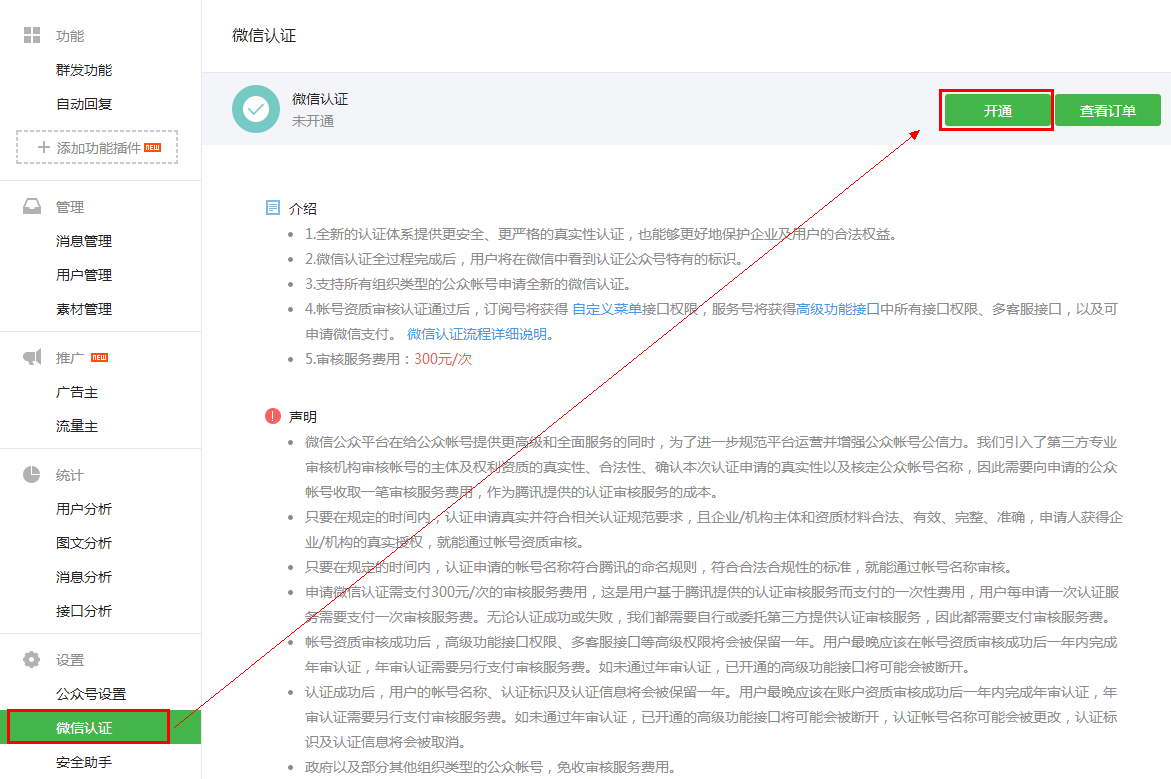 第1步:商家的賬號(hào)是訂閱號(hào)則需要進(jìn)行微信認(rèn)證才可以獲取開(kāi)發(fā)者憑據(jù),如果是服務(wù)號(hào)則不需要進(jìn)認(rèn)證,可直接獲取開(kāi)發(fā)者憑證,訂閱號(hào)申請(qǐng)認(rèn)證可登陸微信公眾平臺(tái)- >在【設(shè)置】- >【微信認(rèn)證】中進(jìn)行認(rèn)證。