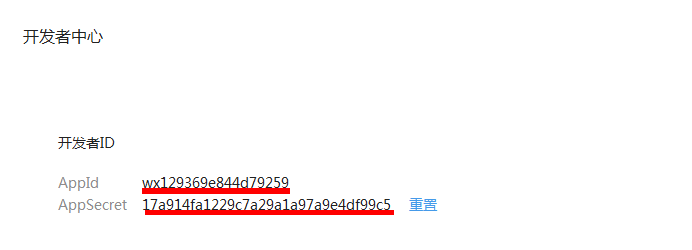 第2步:認(rèn)證成功后進(jìn)入在微信公眾平臺(tái)的【開(kāi)發(fā)者中心】頁(yè)面獲取將開(kāi)發(fā)者ID,先急著不要關(guān)閉該窗口,請(qǐng)繼續(xù)下一步操作。